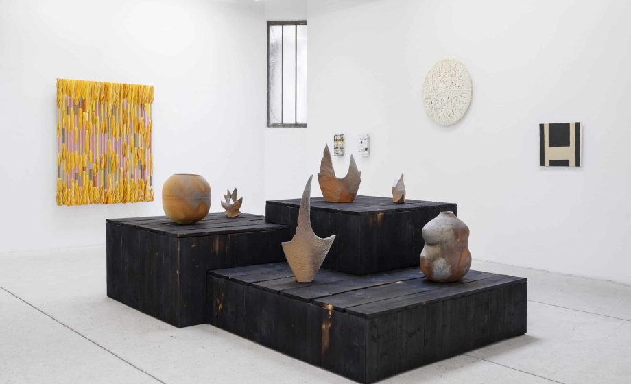 Cette ouverture, on la doit tout d’abord aux matières choisies par les quatre artistes. Les fils colorés de Hicks n’ont pas la solidité de tiges en acier ; ils s’effilochent faisant se mêler leurs différentes teintes de la même façon que les formes se fondent dans les fonds de Storr en raison de l’emploi, au sein d’un même tableau, de peintures aux temps de séchage différents. C’est également le cas dans les œuvres de Stéphane Henry qui lui aussi mélange des matériaux aux propriétés distinctes. Superposant minéraux, couleurs et produits chimiques, il crée des compositions au sein desquelles les bandes horizontales fusionnent plus qu’elles ne se démarquent. L’usage de l’argile non émaillé par le céramiste Yasuhisa Kohyama implique une même porosité de la matière : les formes arrondies ne réfléchissent pas la lumière et notre regard s’enfonce dans les petites incises que présentent ses sculptures.